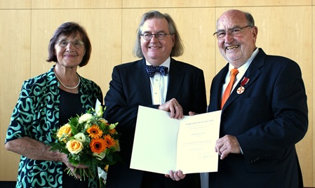 die er als Anerkennug seines jahrzentelangen ehrenamtlichen Einsatzes zum Wohl der Gartenfreunde Stuttgarts, Baden-Württembergs und auch bundesweit unter anderem für den Förderverein Deutsches Kleingartenmuseum e.V. in Leipzig erworben hat.