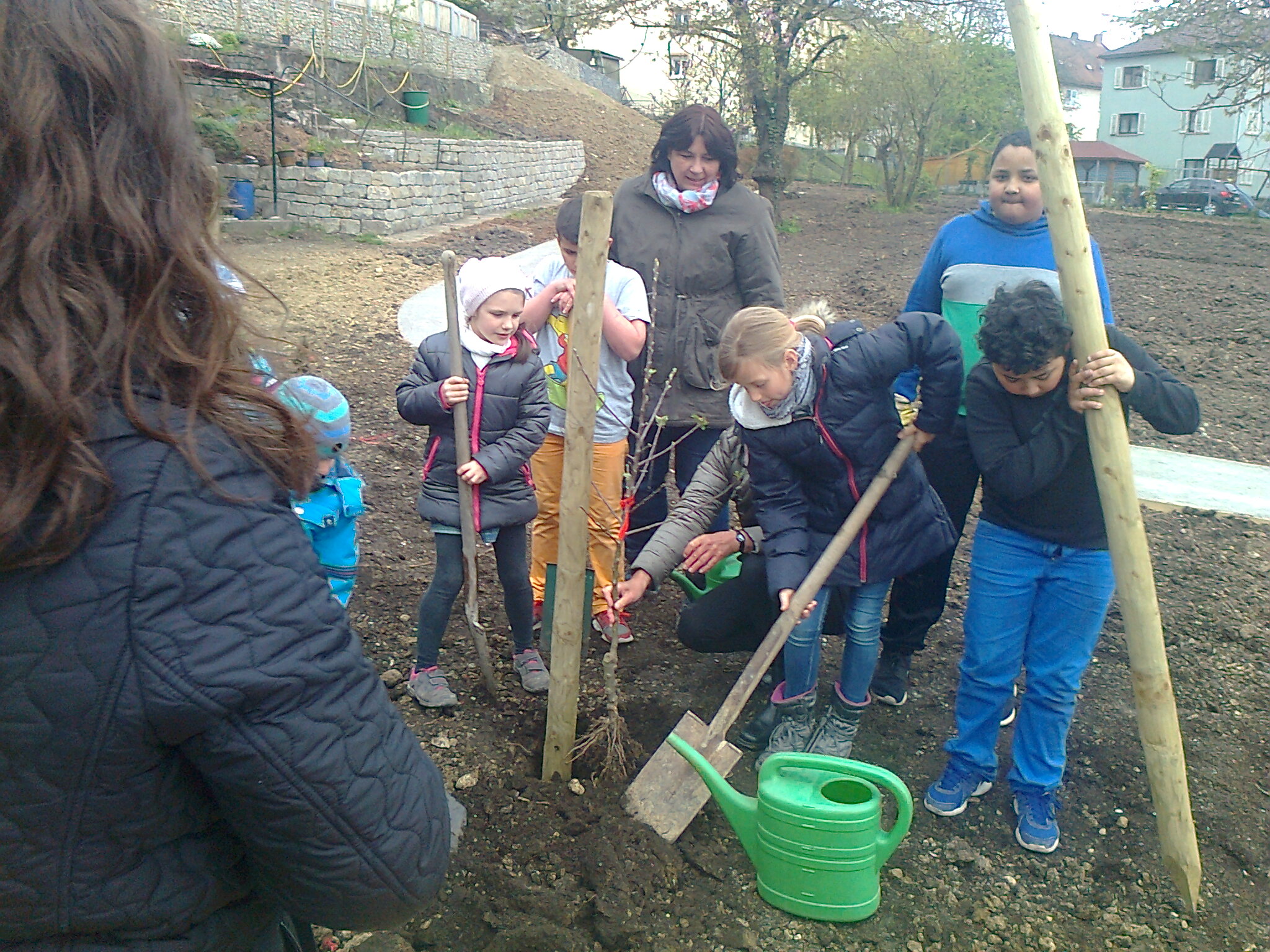 Kirschgartens- ein Garten für Kinder, die Bäume gepflanzt. Eingeladen hatte Sabine Metzger, Vorsitzende des Bezirksverbandes der Gartenfreunde Stuttgart e.V. und der Kleingartenverein Stuttgart-Ost e.V..